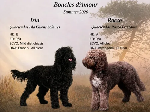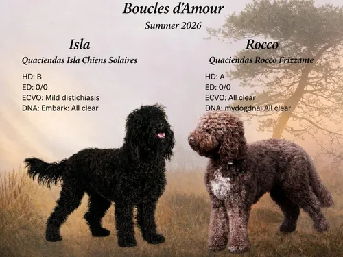 Een mooi nestje puppies wordt verwacht. De pups groeien op in huiselijke sfeer en worden goed gesocialiseerd.