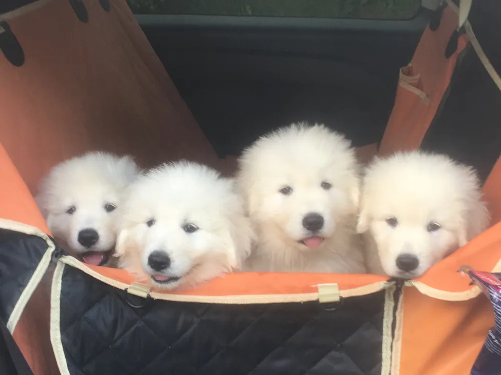 Wij verwachten een nestje van onze Maremma's. De pups groeien op in onze huiskring en te midden van andere huis- en hoevendieren. Socialisatie is onze hoogste prioriteit. De foto is van enkele pups van ons nest in 2025.