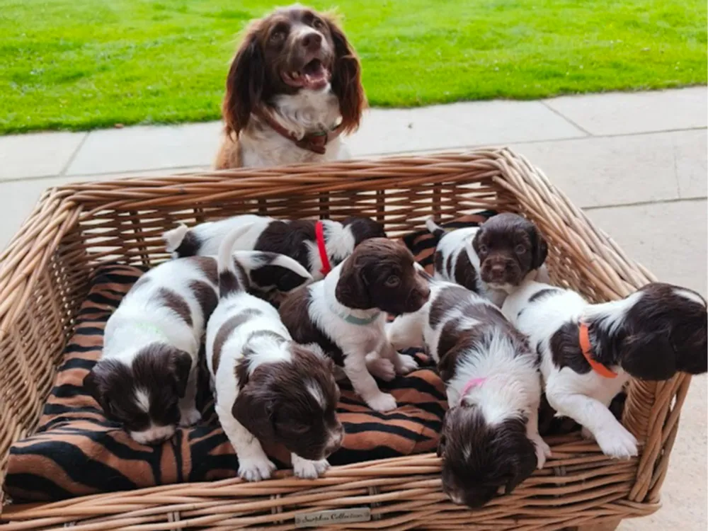 Wilt u een pup kopen van deze fokker? Al hun puppy's staan hieronder vermeld. Als u geen foto's ziet, zijn er de komende maanden geen nestjes gepland. Om puppy's Engelse Springer Spaniel te zien te koop bij andere verantwoorde fokkers, gaat u onderaan de pagina.