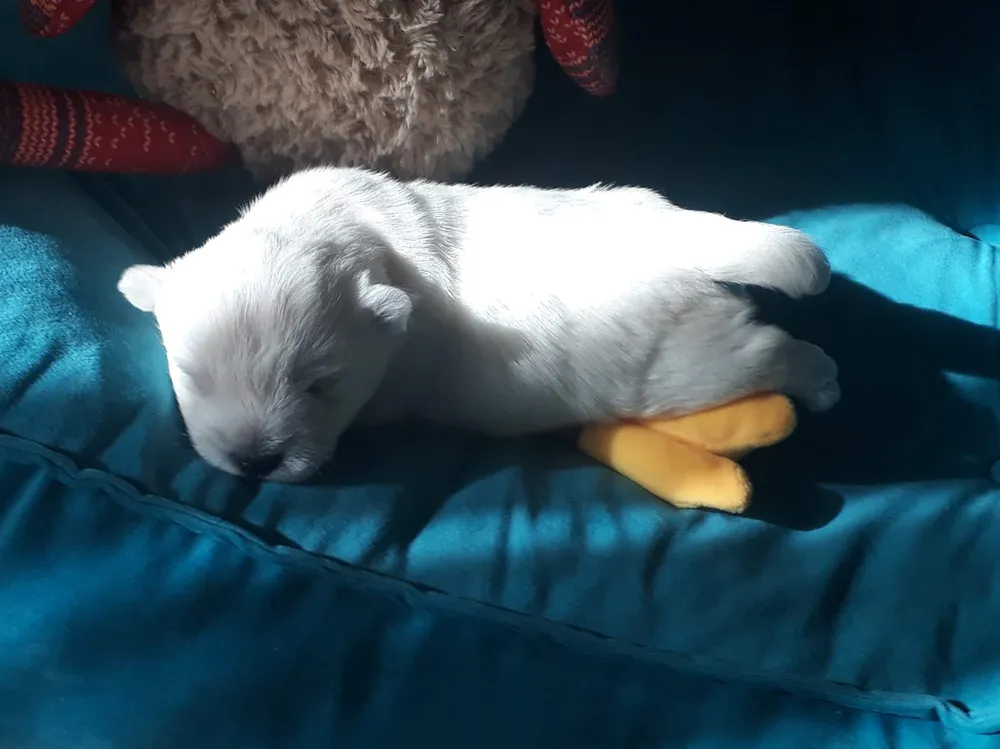 Wilt u een pup kopen van deze fokker? Al hun puppy's staan hieronder vermeld. Als u geen foto's ziet, zijn er de komende maanden geen nestjes gepland. Om puppy's West Highland White Terrier te zien te koop bij andere verantwoorde fokkers, gaat u onderaan de pagina.