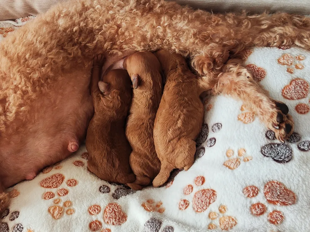 Op 8 april zijn in ons gezin 3 prachtige puppy's geboren: 3 gewillige teefjes.