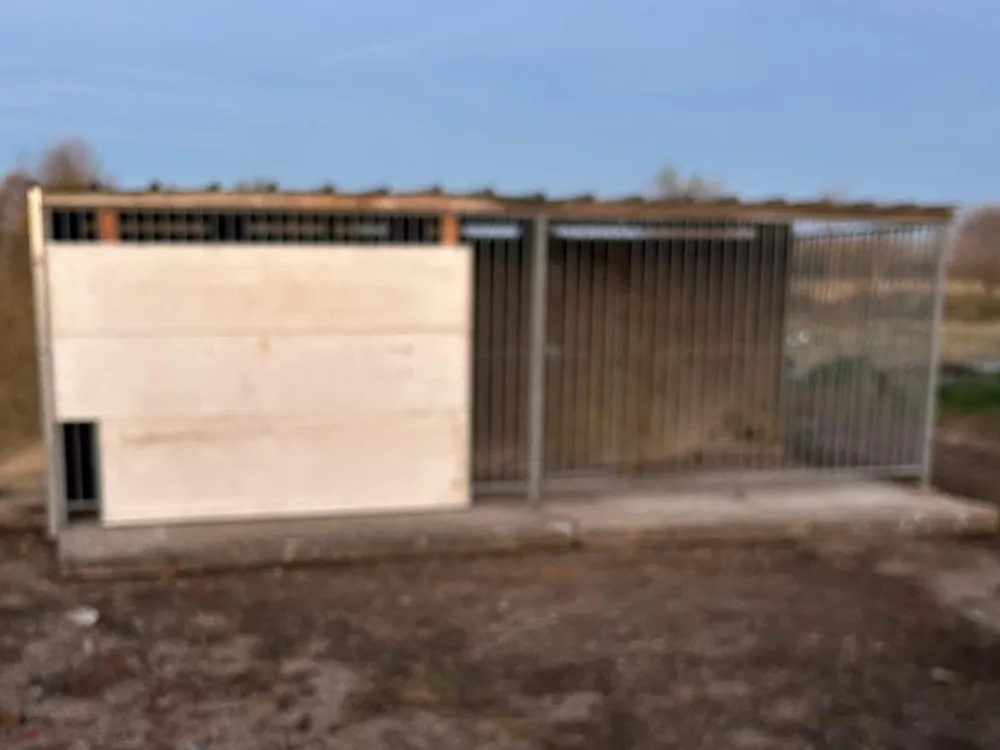 De honden zitten bij ons op een locatie, ze hebben elk hun eigen overdekte hok voor s’avonds en overdag lopen ze rond op het terrein.