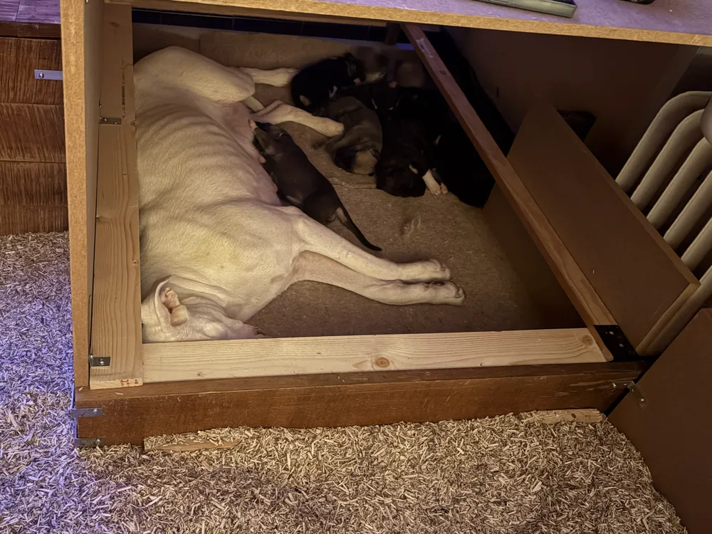 Wij hebben een uniek nestje van 9 pups (nog 1 teefje 5 reutjes beschikbaar) die opgroeien in een liefdevolle, maar zeer gestructureerde omgeving. De pups hebben een 12/02 check gehad en ze blaken van gezondheid en zijn mentaal stabieler 'dan de gemiddelde pup'.
