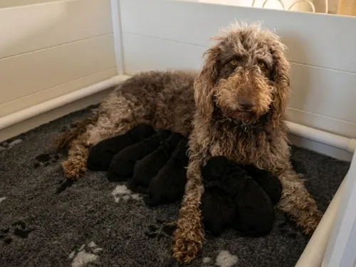 ​Met trots stellen wij ons nestje van 8 kerngezonde Labradoodle pups voor, geboren op 27 maart 2026. Het nestje bestaat uit 5 stoere reutjes en 3 prachtige teefjes, allen met een glanzende zwarte vacht. ​Ouders & Gezondheid De ouders zijn met grote zorg geselecteerd. Beide ouders zijn volledig medisch gekeurd en beschikken over uitmuntende resultaten: ​Heup- en Elleboogonderzoek (HD/ED): Beide ouders zijn vrij getest (HD A score). ​DNA-testen: De vader is vrij getest op prcd-PRA (Progressieve Retina Atrofie), wat betekent dat de pups geen risico lopen op deze erfelijke oogziekte. ​De documentatie hiervan is uiteraard ter inzage beschikbaar. ​Karakter De pups groeien op in een liefdevolle omgeving. Labradoodles staan bekend om hun superieure genen: ze zijn intelligent, niet-agressief, zeer sociaal en actief. Ze zullen uitgroeien tot middelgrote honden die perfect passen bij actieve gezinnen. ​Bent u op zoek naar een trouwe, gezonde en vrolijke metgezel? Dien dan een aanvraag in via het platform voor een kennismaking!
