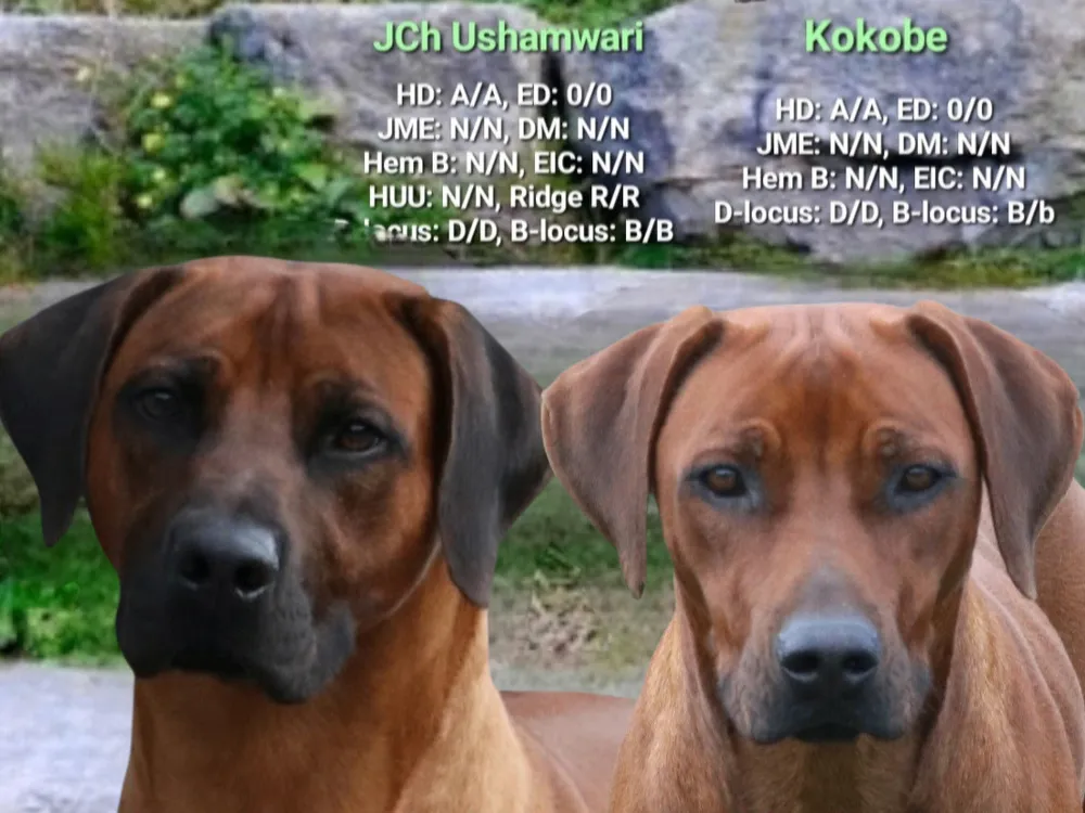Ouders en grootouders zijn getest met uitstekende resultaten. Ze zijn allen HD: A, ED: 0/0, JME: N/N, DM: N/N, Hemofilie B: N/N,... (kort samengevat: volledig vrij van ALLE uitgevoerde gezondheidstesten!! - de testen kunnen ter plaatse ingekeken worden)